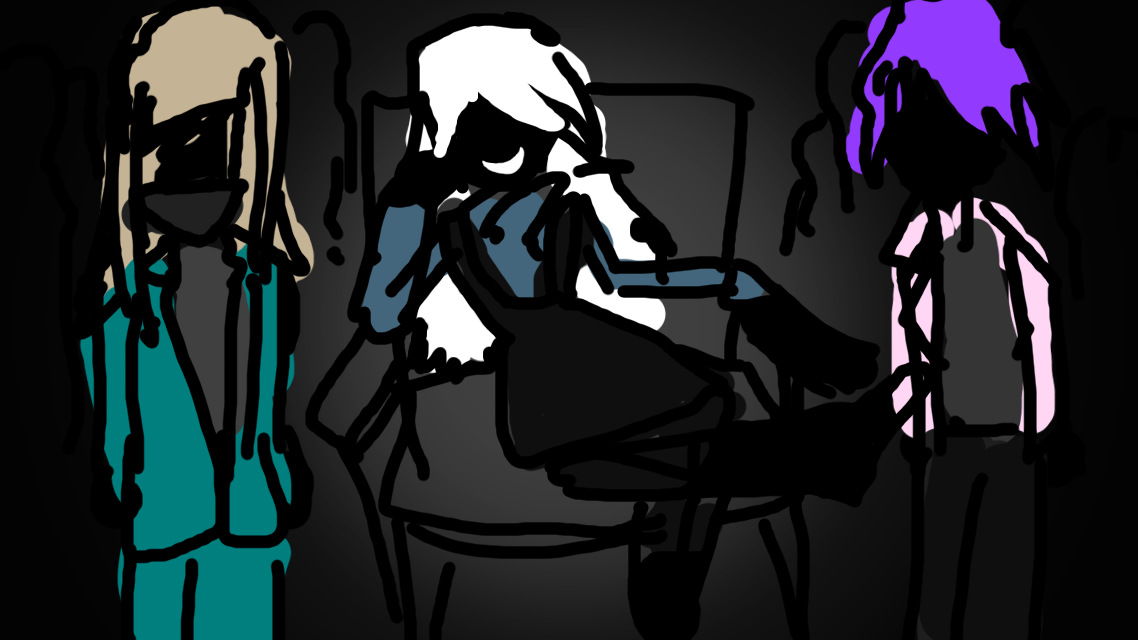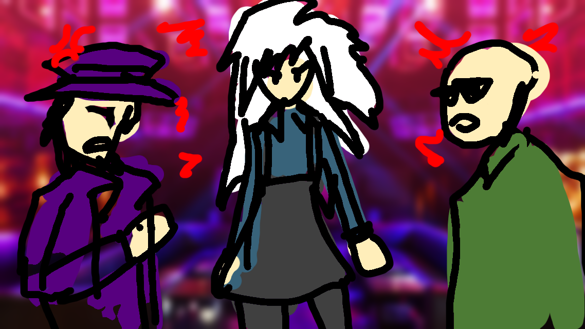 - El primer diseño de Mackenzie. Se ve muy diferente al actual, y es porque en principio, este iba a ser otro tipo de personaje. No sería una chica de 20, sino de 14-15, con una personalidad hiperactiva y caótica. Una visión más caricaturesca de lo que es ser una mafiosa, alguien que se divierte haciendo el mal como si el mundo fuese su juguete. Es por esto que su diseño sería más cute, a la vez que edgy, con una sonrisa grande y un gran flequillo.